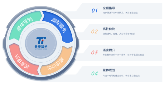天泰国际教育成立于2019年,公司在济南、北京和海南设立分部,在俄罗斯、白俄罗斯、哈萨克斯坦、斯里兰卡、德国、加拿大、美国设立驻外分部。公司致力于提供高端海外教育咨询、中外文化交流、境外申请、中外合作办学、 国际交换生、暑期夏令营及其他等服务。公司在中国拥有多家优质的合作机构和经验丰富的外事专家,拥有高效便捷的出国留学咨询系统和专业的售后服务支持团队。